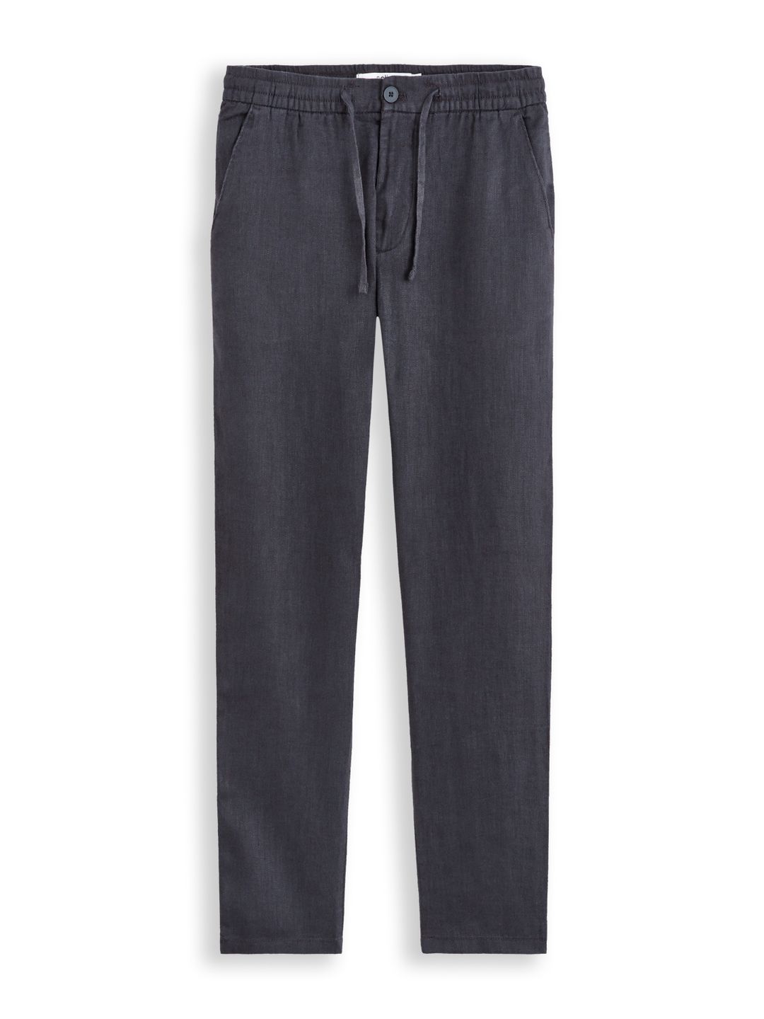 Ľanové nohavice s pružným pásom a sťahovacou šnúrkou. Zapínanie na gombík a zips. Predné šikmé vrecká. Zadné vrecká na gombík. Zúžené dlhé nohavice. Príjemné ľanové nohavice oceníš najviac v lete.