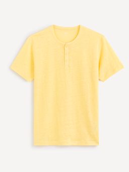 Ľanové tričko s krátkym rukávom. Okrúhly výstrih so zapínaním na 3 gombíky. Krátky rukáv a rovný strih. Vyrobené zo 100% ľanu. Tento materiál je ideálny na leto. Jednofarebné tričko sa dá dobre kombinovať.