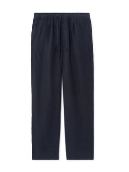 Moderný štýl s ľahkosťou. Tieto voľné tmavomodré nohavice z ľanu sú must-have kúskom pre každého chlapa, čo to s ležérnou eleganciou myslí vážne. Pohodlný voľný strih, talianske vrecká a sťahovacia šnúrka v páse z nich robia ideálnu voľbu na dni, keď chceš vyzerať dobre a cítiť sa ešte lepšie.