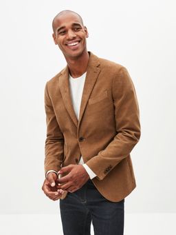 Menčestrové sako v slim strihu. Klasické klopy a zapínanie na dva gombíky. Náprsné vrecko. Predné skryté vrecká s chlopňami. Hladká podšívka.