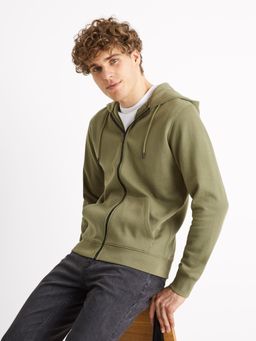 Tepláková mikina so zapínaním na zips. Mikina je v zelenej farbe a zips v čiernej. Kapucňa je so sťahovacou šnúrkou. V spodnej časti delené klokanie vrecko. Široké a pružné náplety.