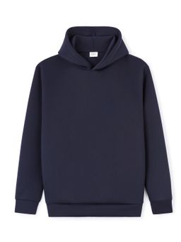 Táto tmavomodrá mikina s kapucňou a golierom je ideálnym kúskom pre ležérny, ale zároveň moderný vzhľad. Vyrobená z neoprenového materiálu "scuba", ktorý je odolný a pritom pohodlný, poskytuje teplo a komfort. Dlhé rukávy a minimalistický dizajn s jednofarebnou úpravou ju robia univerzálnym kúskom pre každodenné nosenie.
