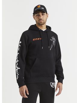 Mikina s kapucňou a potlačou Dragon Ball Super. Strih cez hlavu. Dlhé rukávy s nápletmi.