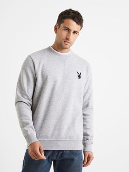 Mikina Playboy sivej farby. Strih bez zapínania. Okrúhly výstrih s pružnou vsadkou. Decentná potlač na prednom aj zadnom diele. Limitovaná edícia.
