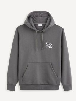 Pánska mikina s kapucňou má nápis Stay true. Kapucňa je opatrená sťahovacou šnúrkou. Nechýba klokanie vrecko. Dlhé rukávy majú široké náplety. Mikinu môžete nosiť k teplákom, džínsom aj cargo nohaviciam.