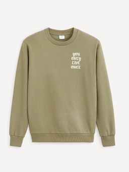 Mikina s okrúhlym výstrihom. Potlač na prednom a zadnom diele. Dlhé rukávy s pružným nápletom.