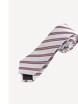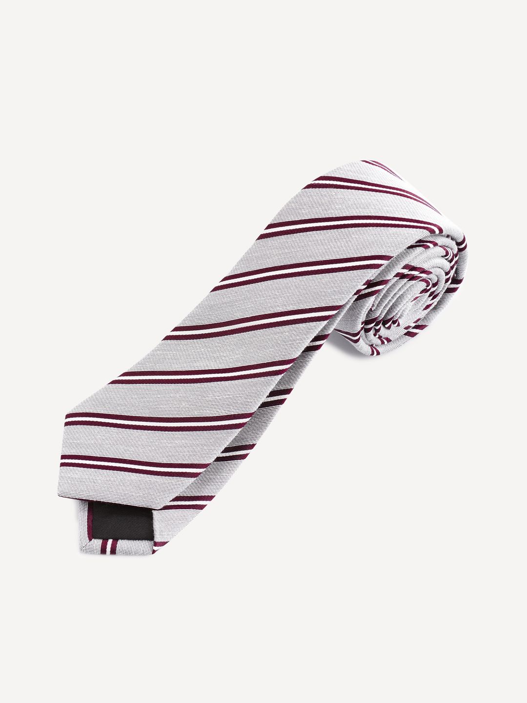 Hodvábna elegantná kravata do obleku. Sivá s vínovým prúžkom.