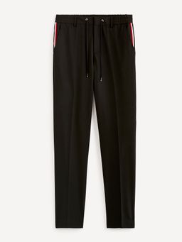 Pohodlné nohavice majú v páse sťahovaciu šnúrku a sú ozdobené trendy detailmi z trikolóry. Nohavice možno nosiť s tričkom a bundou. Chinos nohavice majú vysoký pružný pás, praktické pútka na opasok a celkovo voľný strih nohavíc.