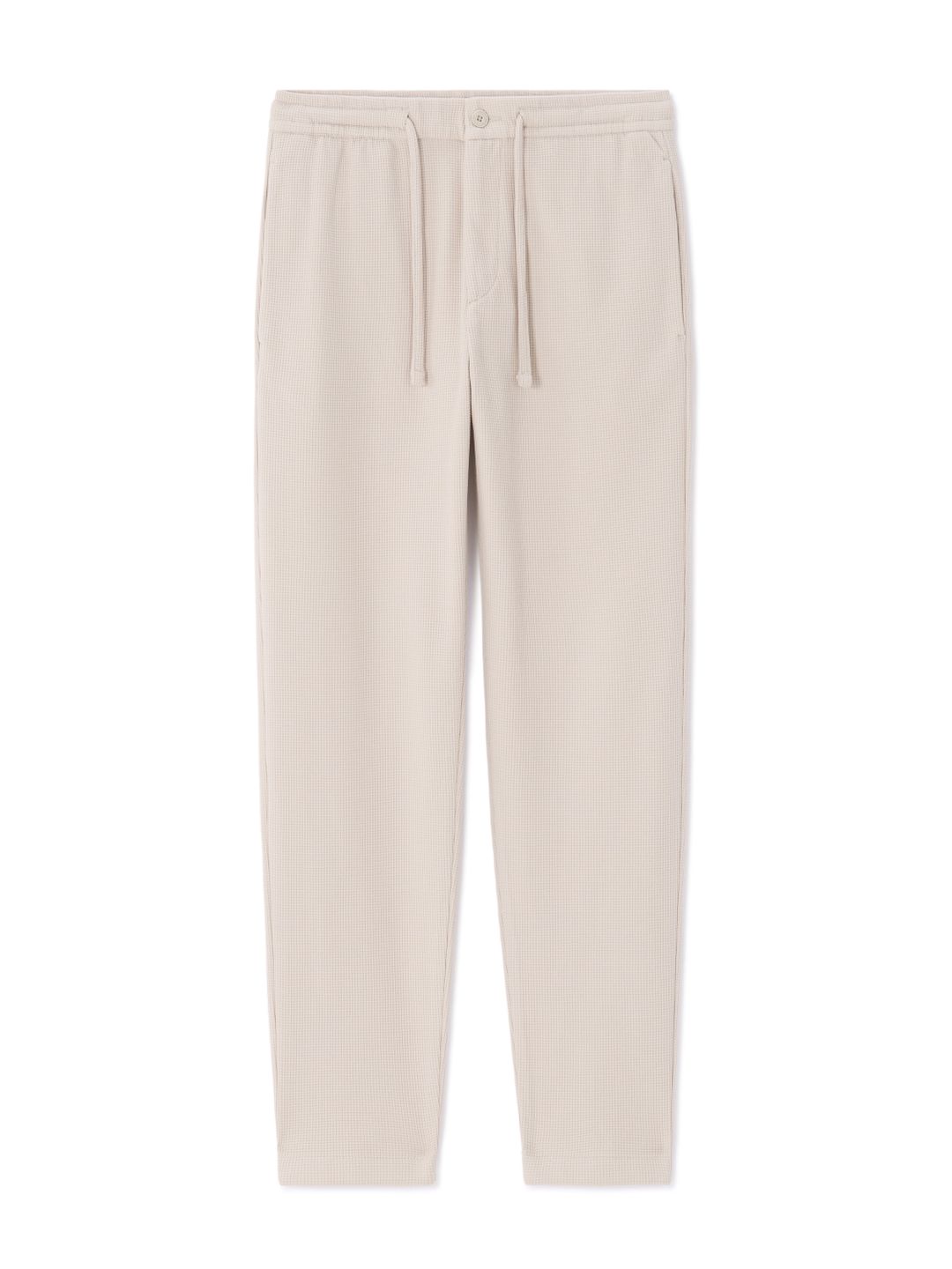 Nohavice, ktoré spájajú pohodlie a ležérnu eleganciu. Textúrované béžové nohavice so slim strihom, vaflovým efektom, zapínaním na zips a gombík, s talianskymi a zadnými vreckami a poloelastickým pásom so sťahovacou šnúrkou sú ideálne na pohodlný a štýlový vzhľad po celý deň. Dostupné aj ako set – dolaď ich ladiacou košeľou.