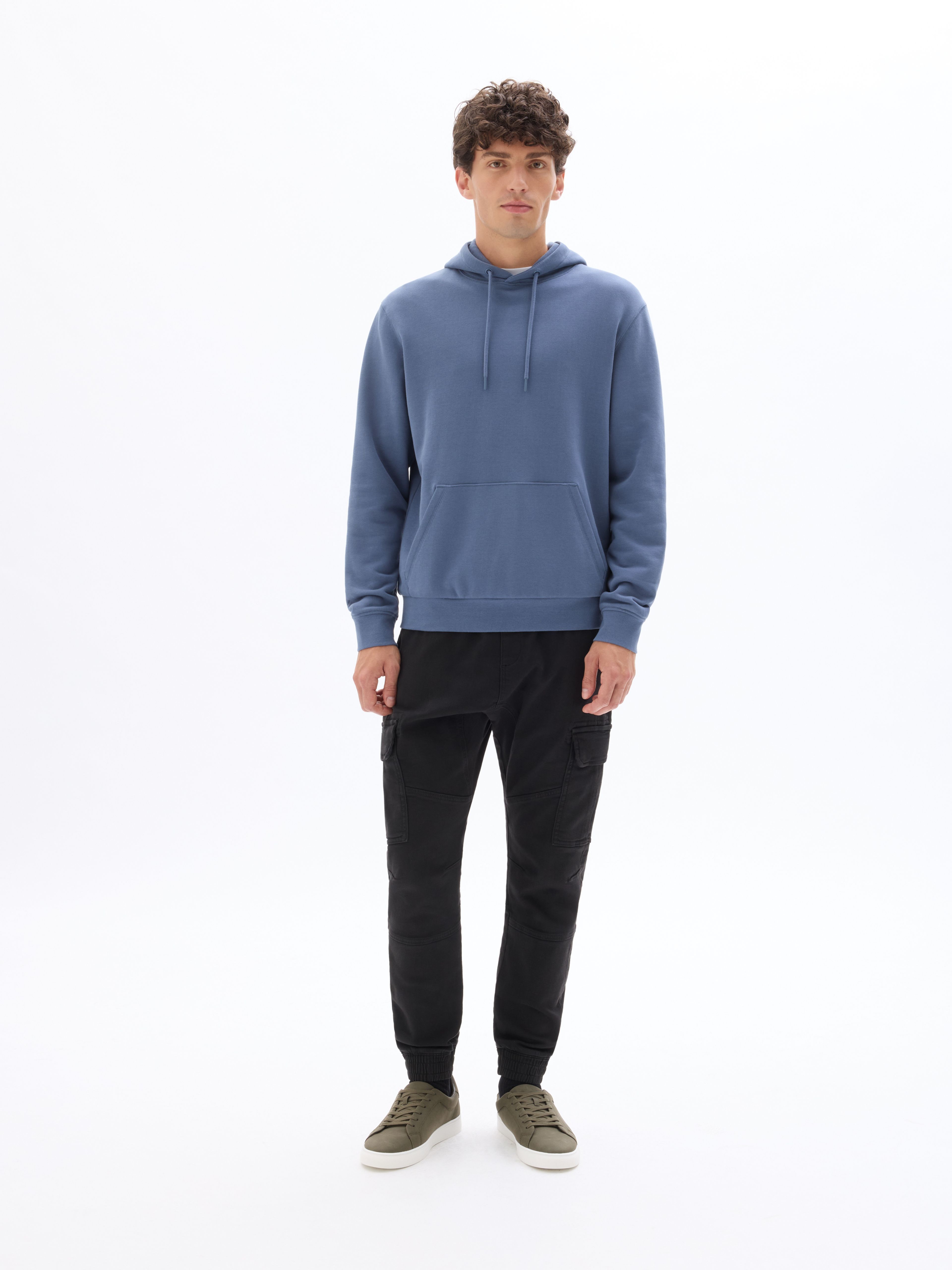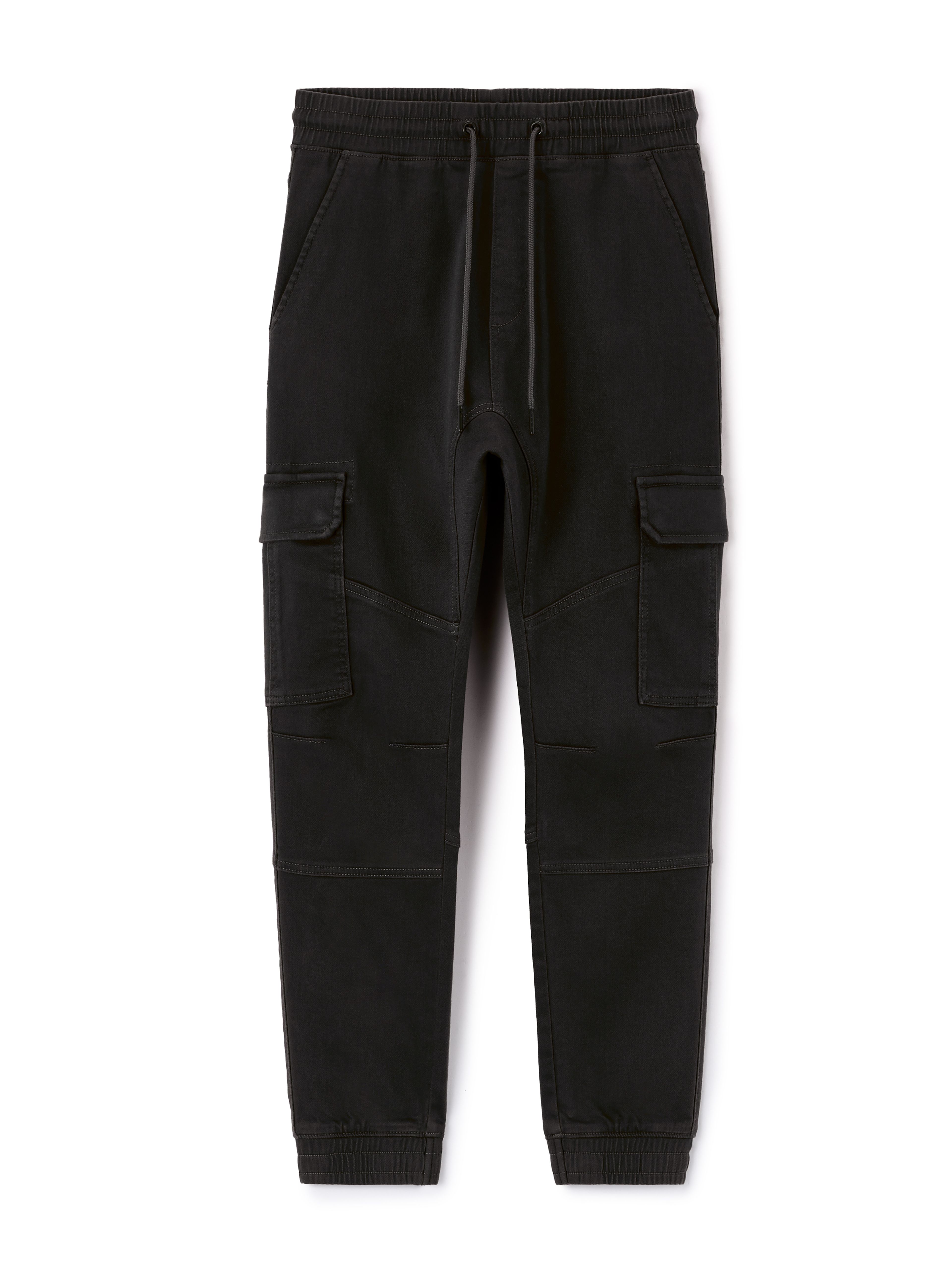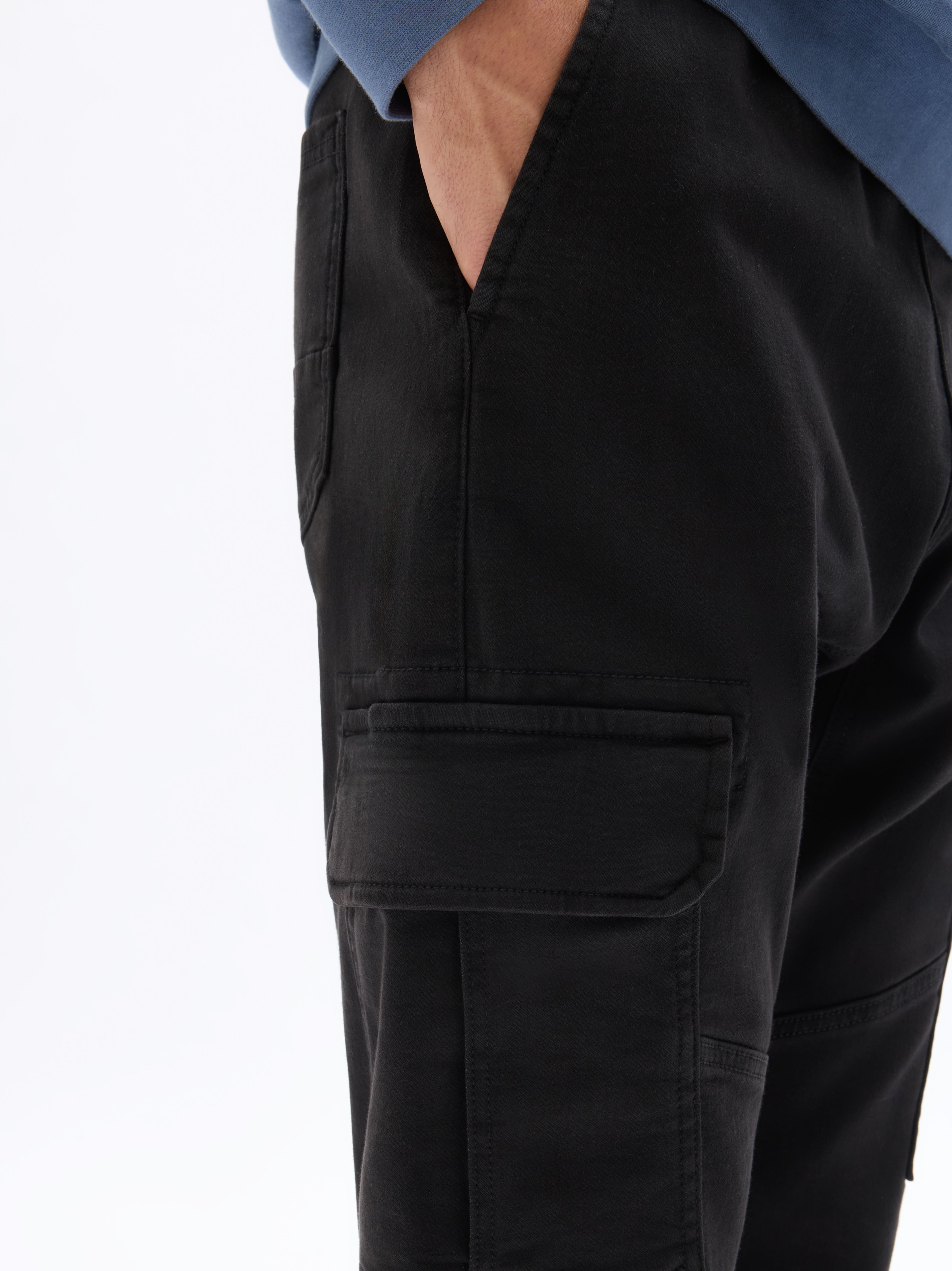 Nohavice kapsáče s pružným pásom. V páse navyše sťahovacia šnúrka. Predné šikmé vrecká a veľké vrecká s chlopňou. Zadné našité vrecká. Nohavice zakončené do pružného lemu. Jednofarebné a pružné. Nohavice na voľný čas.