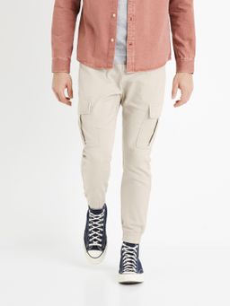 Nohavice kapsáče s pružným pásom. V páse je navyše sťahovacia šnúrka. Predné šikmé vrecká a veľké vrecká s chlopňou. Zadné našité vrecká. Nohavice zakončené do pružného lemu. Jednofarebné a pružné. Nohavice na voľný čas.