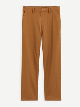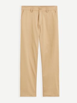 Jednofarebné nohavice chino. Pevný pás so zapínaním na gombík a zips. V páse pútka na opasok. Predné šikmé vrecká a zadné zapustené vrecká so zapínaním na gombík. Voľnejší strih nohavíc. Príjemný a pružný materiál.