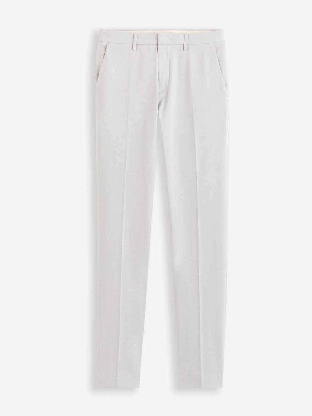 Strečové chino nohavice s pevným pásom. Nohavice majú skryté zapínanie a pútka na opasok. Predné šikmé vrecká a zadné vrecká. Ležérna elegancia pre každý pracovný deň.