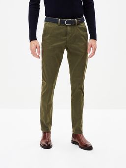 Pánske nohavice v strechu chino. Slim strih nohavíc. Predné a zadné vrecká. Bavlnený materiál s elastanom. Moderná a obľúbená khaki farba. Opasok nie je súčasťou nohavíc.
