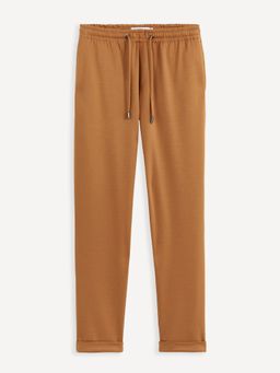 Hladké jednofarebné naťahovacie nohavice. Pružný pás so sťahovacou šnúrkou. Vyhrnuté konce nohavíc. Veľmi pohodlný a pružný úplet.