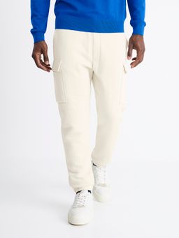 Jednofarebné teplákové nohavice s pružným pásom. Predné šikmé vrecká. Po stranách veľké vrecká s chlopňou. Dlhé nohavice s pružným lemom.