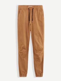 Dopraj si pohodlie v joggingových nohaviciach z bavlny a elastanu. Nohavice majú pružný pás so sťahovacou šnúrkou a sú bez zapínania. Klasické predné a zadné vrecká. Dlhé nohavice s pružným lemom. Športové nohavice doplníš najlepšie tričkom a mikinou.
