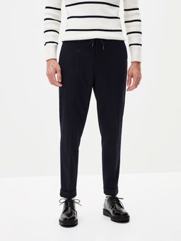 Nohavice s pružným pásom a navyše sťahovacou šnúrkou. Predné šikmé vrecká a zadné vrecká. Nažehlené puky a vyhrnuté nohavice. Pohodlné nohavice unosíte do práce aj vo voľnom čase. Dajú sa dobre kombinovať.