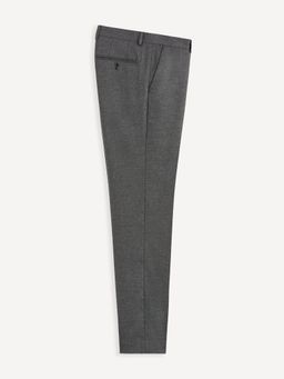Oblekové nohavice klasického strihu. Zapínanie na skrytý zips, gombík a háčik. Pútka na opasok. Predné šikmé vrecká. Zadné skryté vrecká so zapínaním na gombík. Príjemný materiál s elastanom.