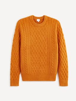 Pletený sveter s vrkočovým vzorom. Dlhé rukávy a okrúhly výstrih.