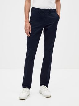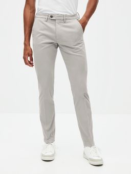 Nohavice slack v slim strihu. Pevný pas so zapínaním na zips a gombík. Nechýbajú pútka na opasok. Šikmé bočné vrecká a zadné vrecká. Svetlo šedá farba. Bavlnené s elastanom.
