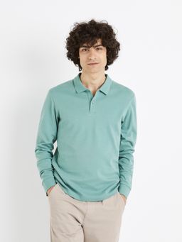 Polo tričko s dlhým rukávom. Mäkký golier a dlhé rukávy s nápletmi. Pri krku zapínanie na dva gombíky. Mäkký bavlnený úplet.