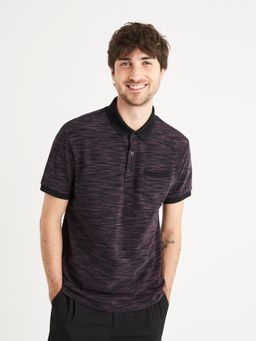 Bavlnené polo tričko. Drobná jemná piké štruktúra. Výrazný melírovaný vzor. Krátky rukáv a golier so zapínaním na gombíky.