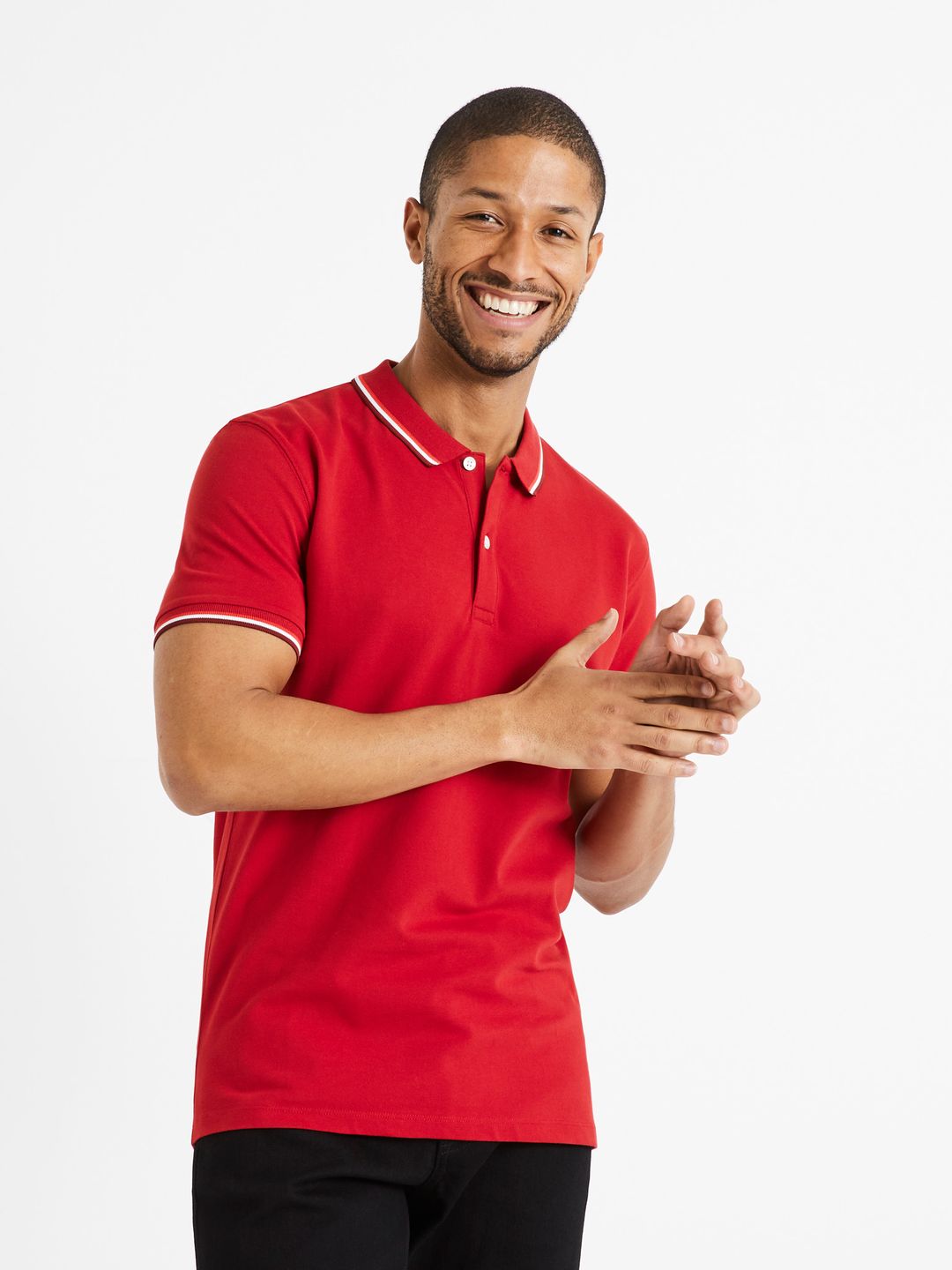 Polo tričko s krátkym rukávom a drobnou reliéfnou štruktúrou pique. Mäkký golierik so zapínaním na gombíky. Tričko má rovný strih. Rukávy a golier sú lemované prúžkami v kontrastnej farbe. Skvele sa hodí k džínsom a teniskám.