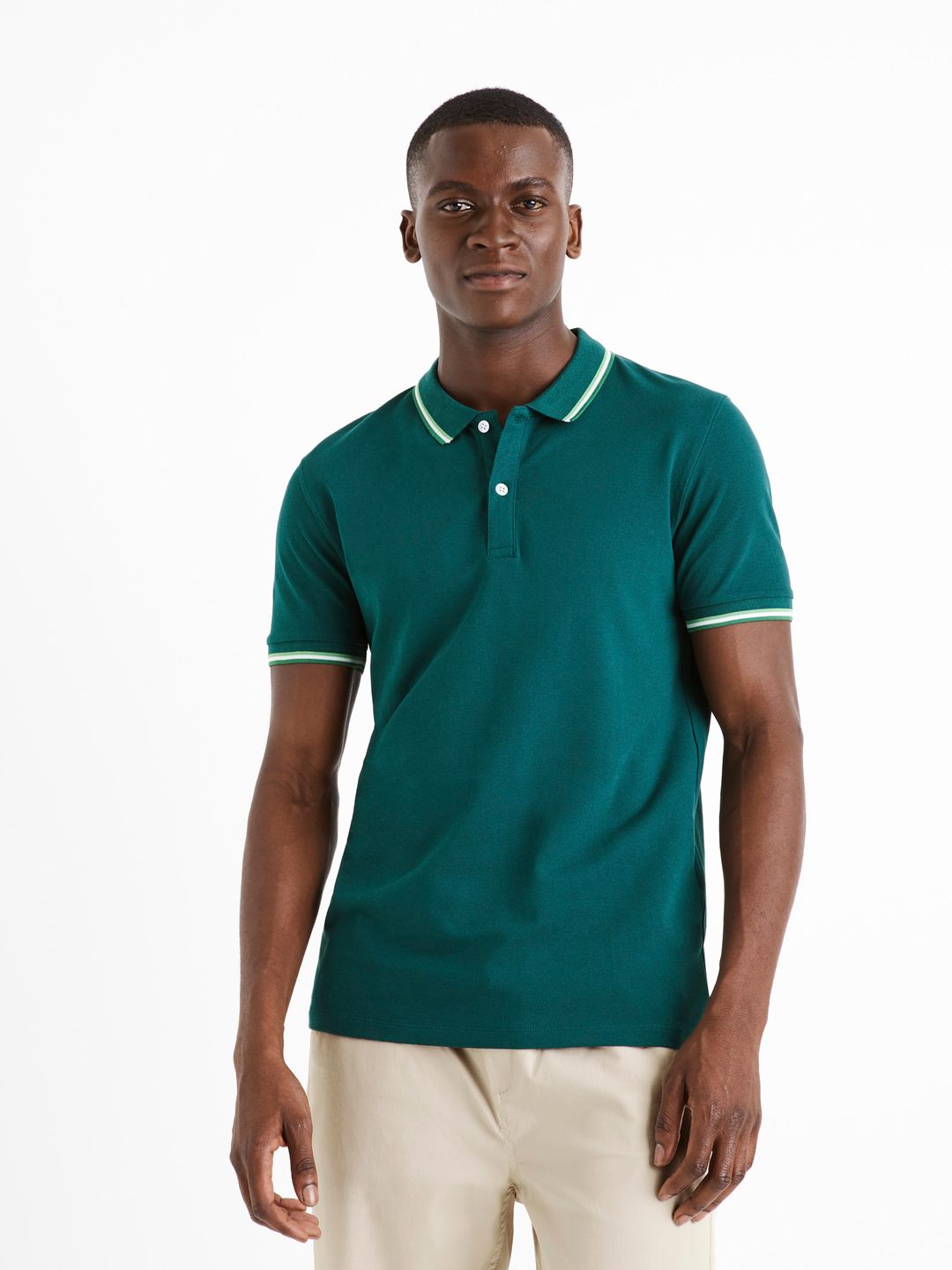 Polo tričko s krátkym rukávom a drobnou reliéfnou štruktúrou pique. Mäkký golierik so zapínaním na gombíky. Tričko má rovný strih. Rukávy a golier sú lemované prúžkami v kontrastnej farbe. Skvele sa hodí k džínsom a teniskám.