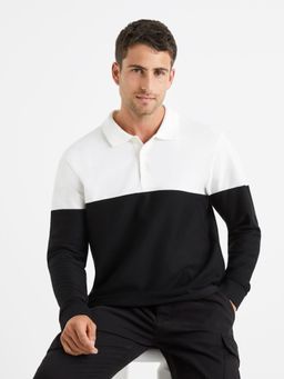 Bavlnené polo tričko s dlhým rukávom. Atraktívna kombinácia čiernej a bielej farby. Mäkký golier a pri krku zapínanie na gombíky. Voľnejší rovný strih.