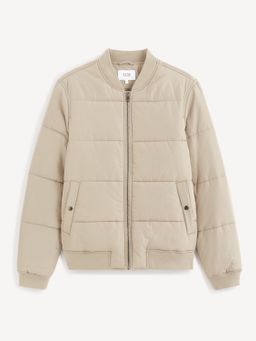 Prešívaná bunda bomber. Klasický strih v páse so zapínaním na zips. Dlhé rukávy s elastickou nášivkou. Predné šikmé vrecká so zapínaním na patentku. Okrúhly výstrih s elastickým lemom.