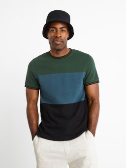 Bavlnené tričko s krátkym rukávom. Tričko má 3 rôzne farebné pruhy. Okrúhly výstrih s nápletom s čiernym pruhom. Rukávy sú tiež olemované úzkym nápletom. 100% bavlna.