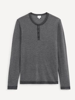 Pohodlné pruhované tričko s dlhým rukávom sa bude skvele hodiť k chino nohaviciam alebo džínsom pre ležérny a trendy vzhľad. Má dlhé rukávy a okruhlý výstrih so zapínaním na gombíky.