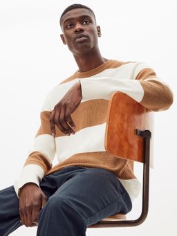 Pruhovaný sveter s dlhým rukávom. Okruhlý výstrih a pružné náplety. Príjemný materiál.
