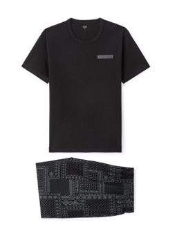 Pohodlné pyžamo na pokojné večery ponúka komfort a štýl pre moderného muža. Tričko a boxerky so vzorom šatky sú vyrobené z mäkkého materiálu, ktorý sa príjemne nosí, takže si môžeš užiť večer naozaj pohodlne.