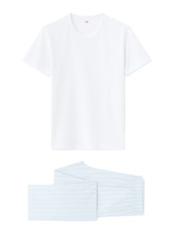 Pyžamový set pre maximálne pohodlie. Vyrobený zo 100 % bavlny, s jednoduchým vrchným dielom a pruhovanými nohavicami ako spodnou časťou, ideálny na pokojný spánok aj pohodové večery doma.
