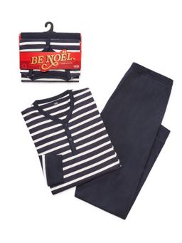 Urob radosť týmto pánskym vianočným pyžamom, ktoré kombinuje pohodlný pruhovaný top s dlhým rukávom a tmavomodrý spodok pre štýlové a útulné sviatočné večery.