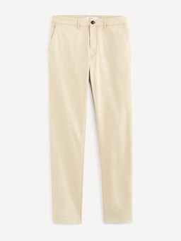 Bavlnené chino nohavice s elastanom. Nohavice v slim strihu. Pevný pas so zapínaním na zips a gombík. Pútka na opasok. Predné šikmé vrecká.