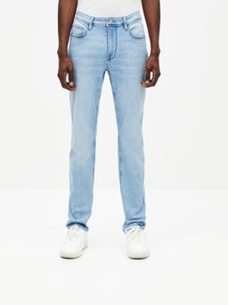 Džínsy C25 v strihu slim. Štandardných 5 vreciek. Moderný vyšší pás. Zapínanie na zips a gombík. Pútka na širší opasok. Príjemný materiál s elastanom.