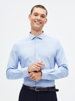 Business košeľa s dlhým rukávom. Obľúbený slim strih. Pružný úplet s drobnou piké štruktúrou. Moderný krátky golier a zapínanie na gombíky. Dlhé rukávy s manžetou.