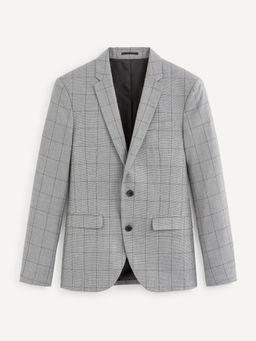 Sako s kockovaným vzorom. Klasický strih so zapínaním na dva gombíky. Klopy a predné rovné vrecká s klopami. Malé vrecko na ozdobnú vreckovku. Sako možno prať.