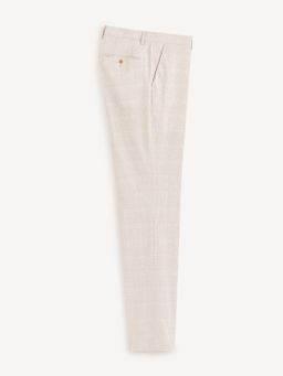 Oblekové nohavice v slim strihu. Pevný pás s pútkami na opasok, skryté zapínanie na zips, háčik a gombík. Praktické predné šikmé vrecká a zadné vrecká sa zapínajú na gombíky. Príjemný a pružný materiál. Nažehlené puky opticky zúžia a pretiahnu nohy.