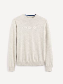 Pánsky sveter vo svetlo šedej farbe. Nápis Ho ho ho! Jemný hladký melír. Sveter má okruhlý výstrih a pružné náplety. Príjemný materiál s prímesou vlny. Sveter skvele doplní džínsy a koženú bundu.