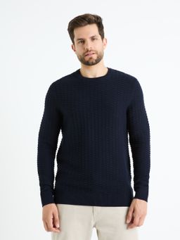 Bavlnený sveter s drobným pleteným vzorom. Okrúhly výstrih ku krku. Dlhé rukávy s pružným lemom. Jednofarebný sveter sa hodí do väčšiny outfitov.