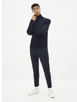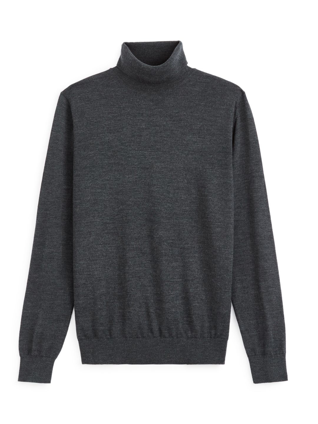 Jednofarebný sveter s rolákom pri krku. Pletený rolák z veľmi jemnej merino vlny. Dlhé rukávy s nápletmi.