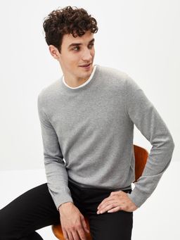 Pánsky hladký sveter s okruhlým výstrihom. Svetlosivý melír. Príjemný materiál. Klasika, ktorá sa vám bude hodiť ku všetkému.
