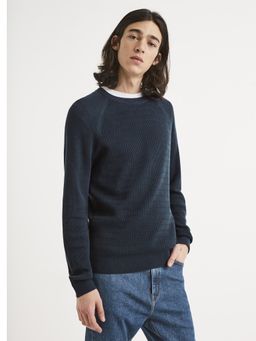 Pletený sveter s okrúhlym výstrihom. Širšie pružné náplety.