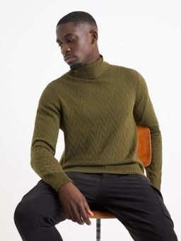 Pletený sveter s rolákom pri krku. Jednofarebný a z príjemného materiálu.