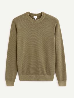 Jednofarebný pletený sveter s okrúhlym výstrihom. 100% bavlna.