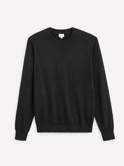 Jednofarebný sveter s okrúhlym výstrihom. Príjemný materiál.